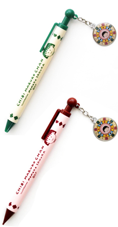 ボールペンとシャーペンにまる子ちゃんのメタルストラップが付きます