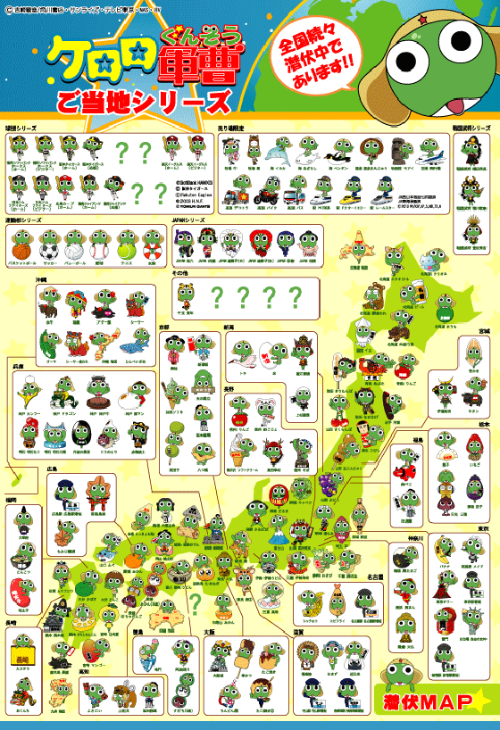 ご当地ケロロがいっぱいの日本手ぬぐいであります!