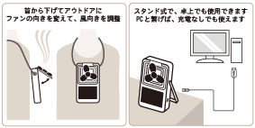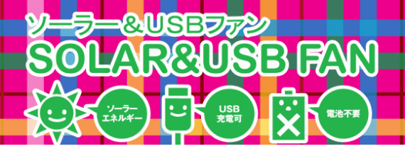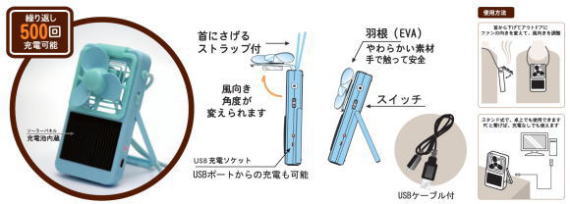 ソーラーからでもUSBからでも充電できる携帯用扇風機。