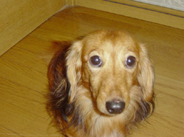 | 生後2ヶ月の頃から得意の上目遣いで世の殿方を狂わせていました。もちろん得意技は8ヶ月たった今も健在です。 |