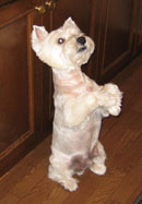 | ラブは頂戴ポーズがお得意で後ろ足だけで立って手を上下に振ることができます。(犬にとってはなかなか難しいようです。) |