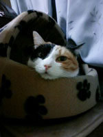 | TVを見るのが大好きなツンデレ娘です。人みしりは激しいのですが、気に入ると頭を手の下にねじ込んでナデナデを強要します。 |