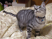 | 2年半前、生まれて2日目に保護され3兄弟で唯一生き延びた子です。運動神経も鳴き声も猫らしくなく、自分は「ママ(私)の息子だ」と思っている様子がまたユニークで愛らしいです。 |
