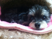 | お店の看板犬のモモちゃんです。トーシンパックさんの商品もおいてますので、是非遊びに来てください。 |