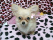 | 4ヵ月のいたずらっ子マロンちゃん。元気いっぱい。まだ1.3キロしかありません。 |