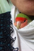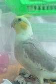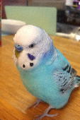 | 青い子なのでブルーのブルちゃん6才の男の子です。お腹が空くと肩に止まって来て「ゴハンタベル」と言います。沢山喋ります。 |