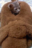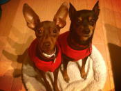 | アメリカから連れて帰ってきた妹たちです。スタイル維持に一日三回のお散歩は欠かせません。一昨年、弟の黒猫ロミオくんが新たに加わり、毎日がますます賑やかになりました。 |