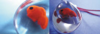 しづくのかたちのクリアに入った金魚ストラップ 7月末発売(2005/07/08)