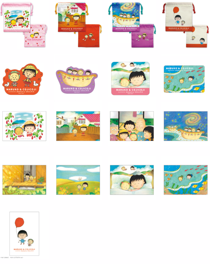 ・ポストカード 全2種 ・ポーチ 全2種 ・ぷくぷくシール 全2種 ・缶ケース 全6種