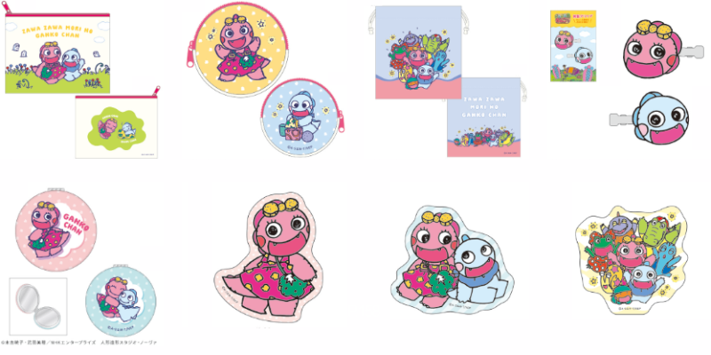 ・ポーチ 全1種 ・巾着 全2種 ・缶バッジ 全2種 ・立体キーホルダー 全1種